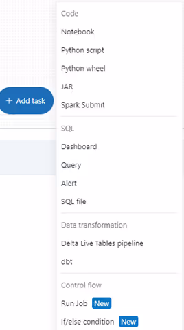 A task is a unit of execution in the workflow. Workflow supports a wide range of tasks like notebooks, SQL and Spark scripts, Delta Live Tables pipelines, Databricks SQL queries, and dbt jobs. As it supports all varieties of tasks, a workflow can be sufficient to orchestrate an end-to-end pipeline for a subject area.